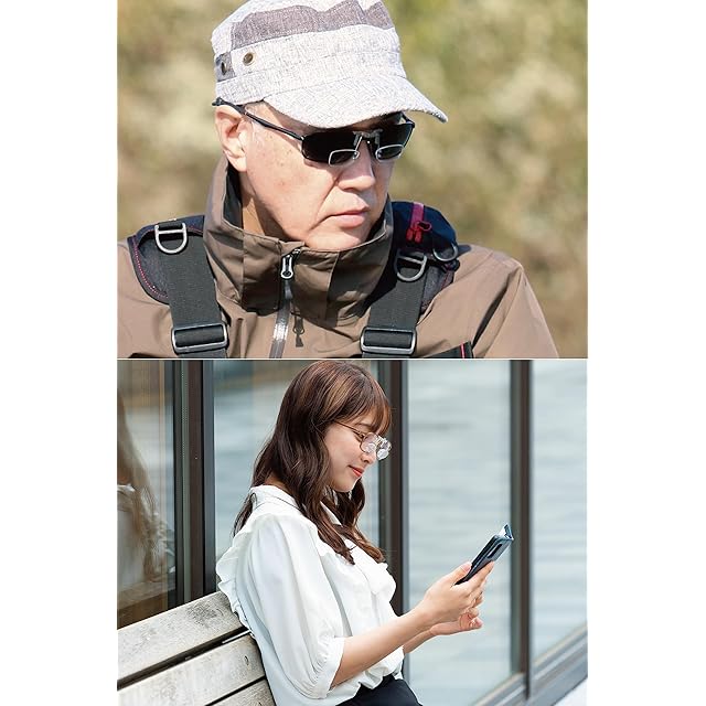メガネやサングラスに取り付けると見辛かった手もとやスマホ、PCの画面が拡大されすっきりハッキリ見えるクリップオンタイプの拡大鏡です。お使いになるメガネのレンズの縦幅に合わせてアームの長さが18mm、25mmと35mmの3タイプをご用意しました。老眼の補助として使用する場合は40~48才(1.3倍~)、45~53才(1.4倍~)、50~58才(1.5倍~)、55~63才(1.6倍~)、60才~(1.8倍~)、65才~(1.9倍~)、70才~(2.0倍)を目安にお選びください。<※ 倍率=老眼度数÷4+1 ※裸眼ではなく、メガネ使用時の老眼度数を目安としてください。>