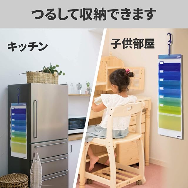 しまいたいときには折りたためる、壁掛け収納ファイル。整理したポケット一つずつも取り外し可能。引っ掛けて吊り下げればすき間にも使えるので、場所を取らずに書類をすっきりと整理できます。