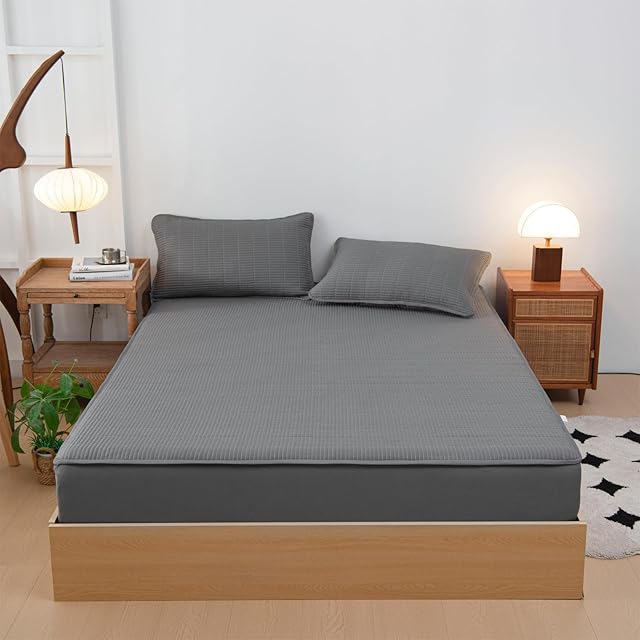 商品名:ボックスシーツ 敷きパッド マットレスカバー 三層構造ベッドパッド ベッドカバー 毛玉なしベッドシーツ 敷き布団カバー 全周ゴム付き 着脱簡単 柔らかく肌に優しい 吸湿速乾 抗菌防臭 防ダニ 丸洗い可能 オールシーズン USEEWOOW (ダークグレー, ダブル・140×200)