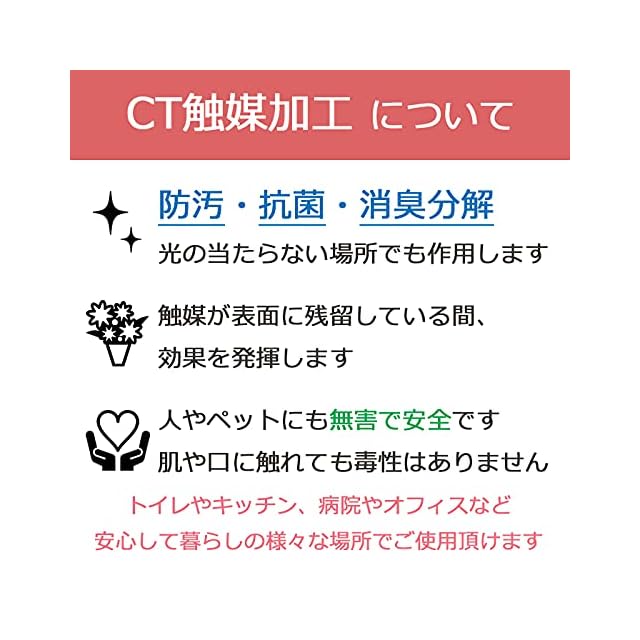 山久のシルクフラワーにはCT触媒加工が施されているため、消臭・抗菌・防汚の作用があります。 CT触媒は光触媒加工と異なり、光が当たらない場所でも効果を発揮し、空気を綺麗にしてくれます。