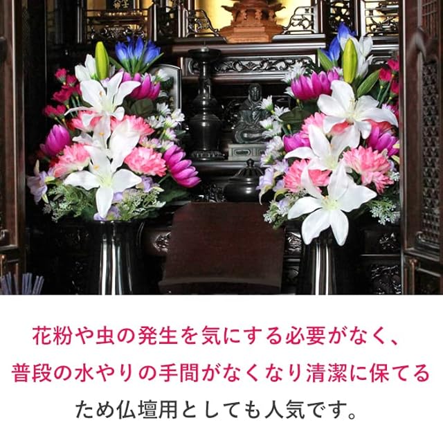 お墓用としてお供えするのはもちろん、仏壇用としても花粉や虫の発生を気にする必要がなく、仏壇を清潔に保てます。