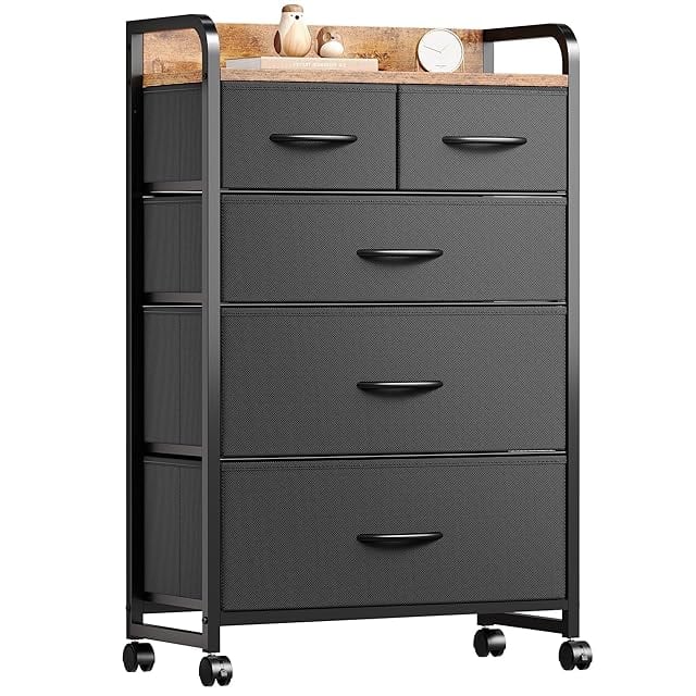 YeTom タンス 収納 チェスト 4段 引き出し 収納 たんす 洋服収納 衣類収納 箪笥 收纳柜 ファブリックチェスト リビング 収納 多機能 木製天板付き スチールフレーム 大容量 変形にくい 和風 布製引き出し 組み立て簡単 転倒防止 安定感 ストッパー付きキャスター L55×W29×H96cm (4段5杯 ピンテージ)