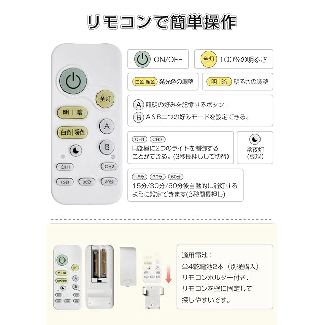 【取付簡単】道具・工事が不要で取付作業ができます。女性でもマニュアルを参照しながら簡単に設置できます。明かさ十分、~6畳までの部屋に適切です。リビングルーム、ダイニング、寝室、オフィス、トイレ、洋室、和室、部屋、居間など様々のところで活躍られます。 ★警告:感電や怪我を防ぐため、取り付けまたは取り外しの前に必ず電源を切ってください。