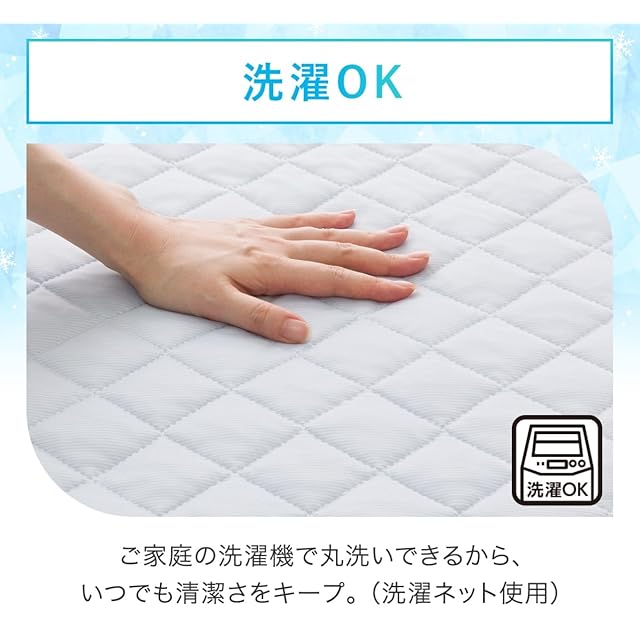 さわってひんやり接触冷感。 シングルサイズ 【ニトリの接触冷感(Nクール)】表生地 ●ゴムバンド付き ■サイズ(約) 100×200cm ■組成 表生地:ポリエステル70%、ナイロン30% 充填物:ポリエステル100% 裏生地:ポリエステル100% ■洗濯機OK(ネット使用) ※こちらの商品は敷パッドのみの販売です。