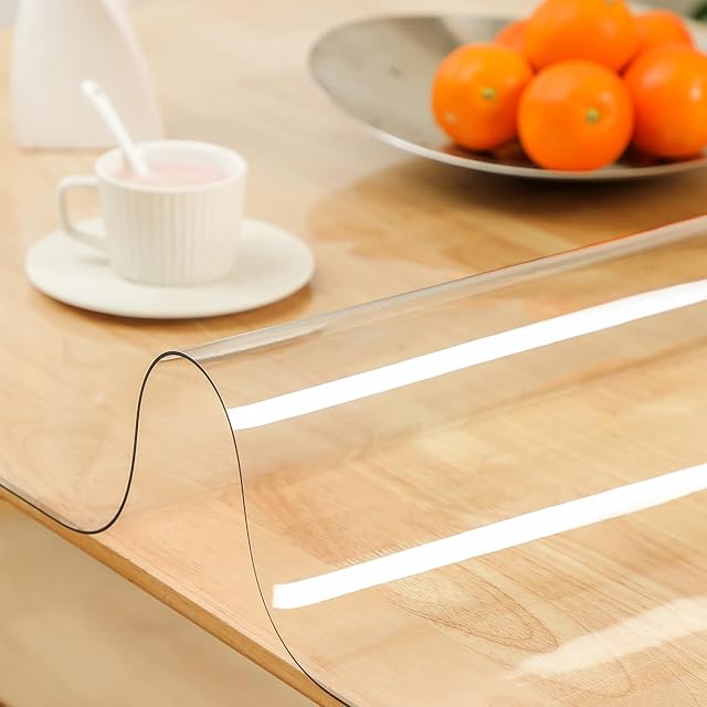 テーブルクロス 透明:気泡なしPVC製 テーブルマット 新世代のアップグレードされたPVC素材でできており、透明性が高く、味がなく、収縮しません 裏面に細かい凹凸を付けるので、どんな天板でも気泡を残らないように利用いただけます.