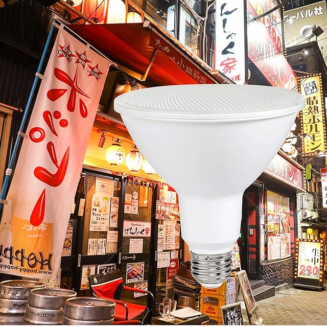 【特徴】 ・IP65の防水等級で屋内外どちらでも使用可能 ・PAR38 LEDを使用して従来のビーム球を完全再現 ・工場・倉庫などに最適なスポット照明や看板照明に適用可能 ・約80%の消費電力カットにより、省エネもできる長寿命タイプ ・有害物質やUV放射がなく安心して使用できます ・バラストレス水銀ランプに比べ、交換作業も大幅に省けます このLED電球は、IP65の防水等級を備えているため、屋内外問わず使用することができます。PAR38 LEDを使用することで、従来のビーム球を完全再現し、工場や倉庫などのスポット照明や看板照明に最適です。また、従来の白熱電球に比べて電力消費を約80%もカットし、50,000時間の長寿命により維持費を大幅に削減することもできます。また、有害物質やUV放射がなく、安心して使用することができます。更に、バラストレス水銀ランプに比べ、交換作業も大幅に省けます。