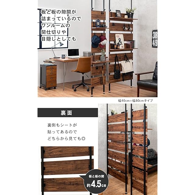 商品名:萩原(Hagihara) 突っ張り ラック つっぱり 棚 壁面収納 ウォールラック 【DIY・穴あけ・工事が不要】簡単取付 段差対応 木目調 幅60 スリム ブラウン KTR-3147BB