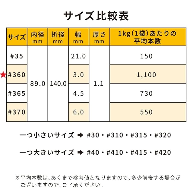 #360( 360号 ) : 内径約89mm / 折径約140mm / 切幅約3mm / 厚さ約1.1mm
