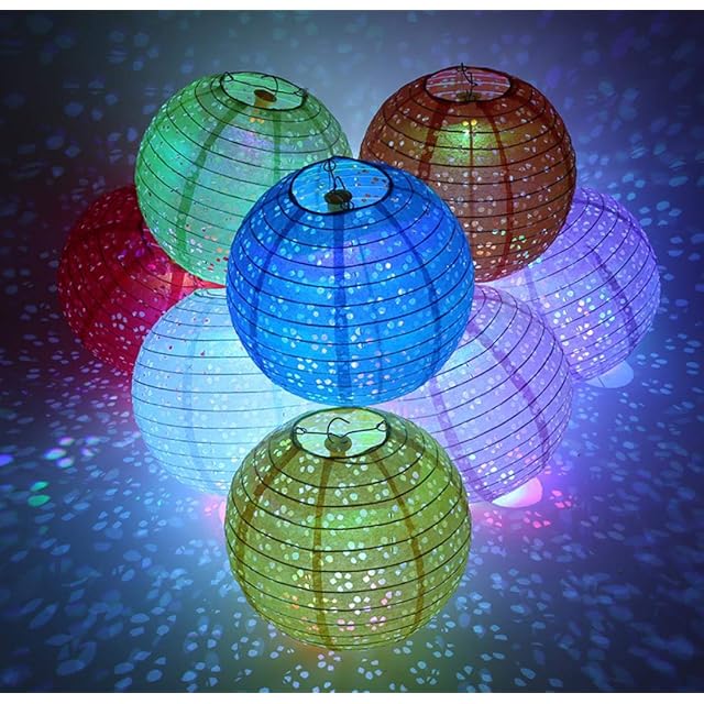 商品名:DUOLEIMI 提灯 お盆 紙ちょうちん 透かし彫り 紙提灯 お盆飾り LED付き 燈籠 カラフル 10個セット (丸型)