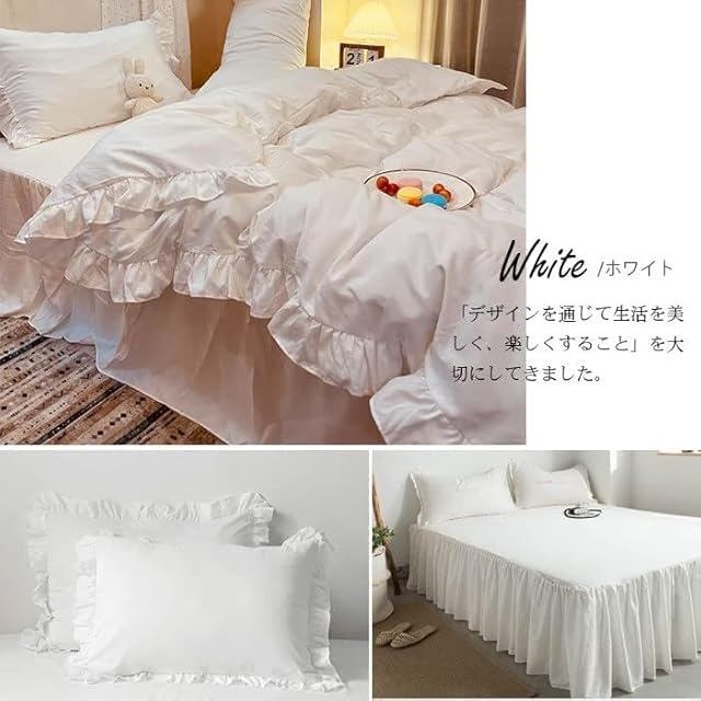 【かわいいデザイン 】 ピローケースと掛け布団カバーにはフリルをあしらい、シンプルな可愛さを表現しました。どんなお部屋にも合わせやすい無地柄で、高級感溢れる光沢もあり、自家用でも、ご両親、友人にプレゼントとしてもおすすめします。