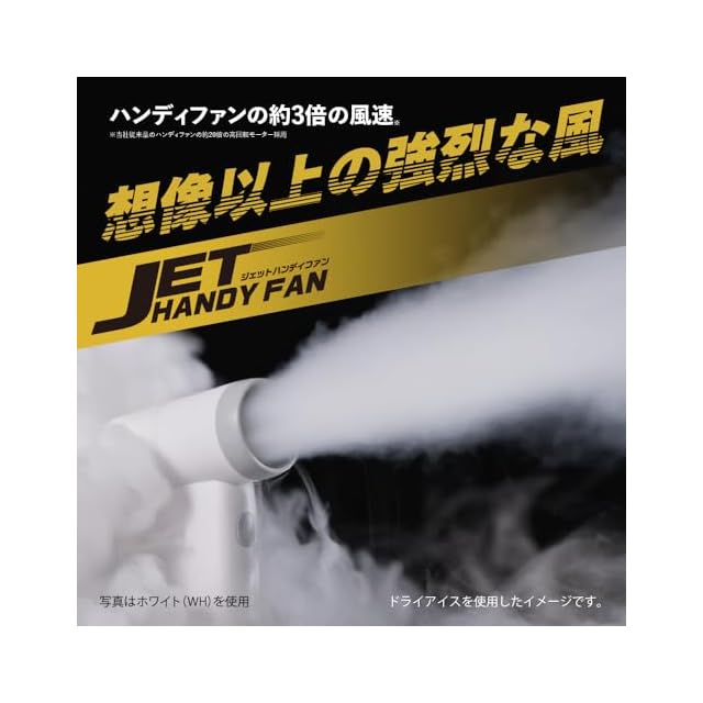 まるでジェット機、ハンディファンの3倍の風量 ジェットハンディファン。通常のハンディファンが強運転で1分間約3,000回転のところ、本製品では、1分間約6万回転の高速回転なモーターを使用することで、まるでジェット機のような風を強烈な風を送りだし、一気に体温を下げてくれます。