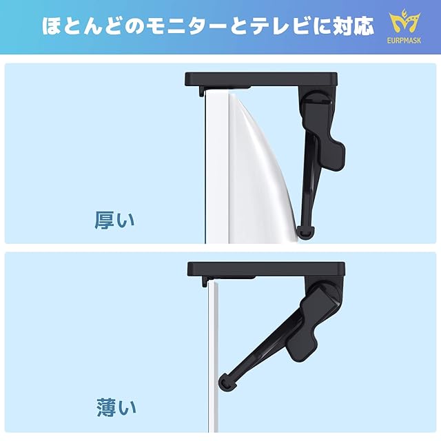 【設置簡単 支えを調整する可能】:置くだけの簡単設置でネジなどで固定する必要がなく、取り外しもすぐにできます。液晶ディスプレイのフチにひっかけて取り付けるだけの簡単設計。また、取付部分の角度は、自由に変えることができ、しっかり取り付けができ、取り外しも簡単です。パーティションへ設置すれば、上置き棚としても使用できます。