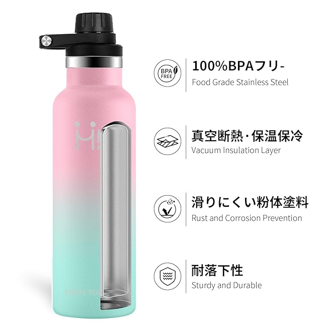 商品名:YANGYAO 水筒 1リットル 保温 保冷 布袋付き 直飲み ステンレスボトル 炭酸 1000ml スポーツドリンク対応 魔法瓶 ハンドル付き 軽量 持ち運び 洗いやすい 漏れ防止 お手入れ簡単 部活 スポーツ オシャレ ヨガ キャンプ アウトドア ランニング サイクリング オフィス キャンプ 運動 中学生 おしゃれ ピンク+グリーン