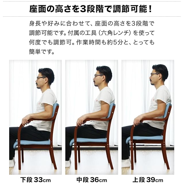 座面の高さ:(約)33cm / 36cm / 39cm (3段階調節) 材質:構造部材:合板 表面加工:ラッカー塗装