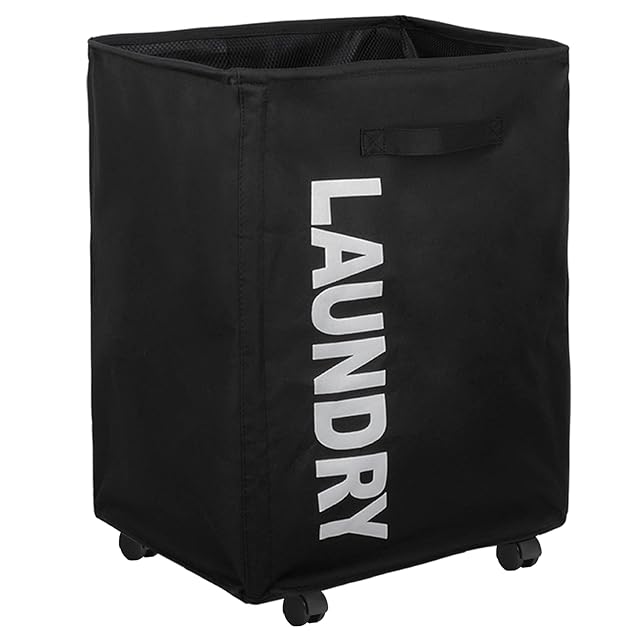 GIORSEN 折りたたみランドリーバスケット ランドリーボックス 洗濯かご キャスター付き 75L大容量 幅30cm スリム 防水 持ち手 防塵メッシュカバー付 引っ越し祝い 新生活 入学式 ギフト (40*30*58cm ブラック)