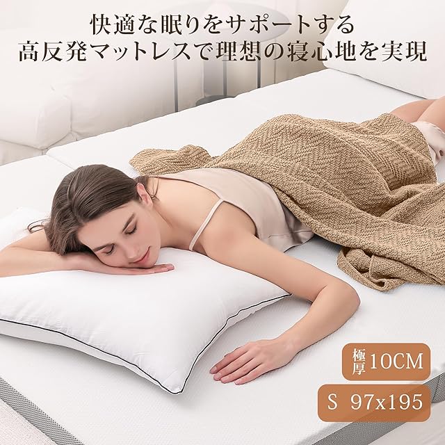 ✅【シングルサイズ・厚さ10cm】サイズ:97×195×10cm。高反発三つ折りマットレスは、敷布団やベッドマットレスとして使える10cm厚タイプ。一人暮らしや来客用にもぴったり。