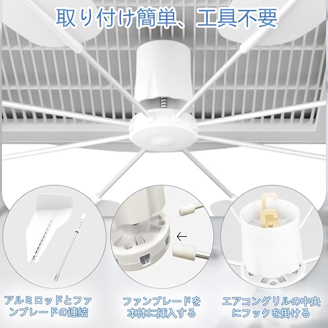 商品名:EIING【新設計】エアコンファン エアコン プロペラ 天井取付フ ァン 分散天井扇風機 エア コン風よけ エアコ ン風除け エア コンかぜよけカバー 風分散 シーリングフ ァン エ アコン用ファン 循環送風 風向き調整板 風避け 工具不要 引っ掛けるだけ セントラル 空調効率アップ ターオフィス、工場、レストラン用 結露対策 直撃風対策(ホワイト)