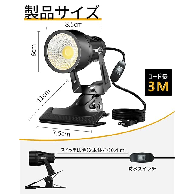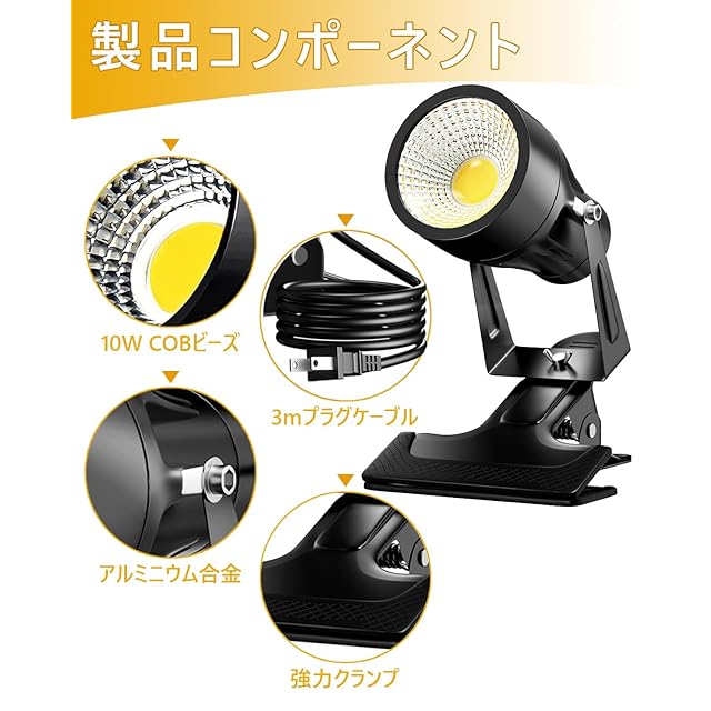 【品質】屋外にも適した高耐久のLEDクリップライト、フリッカー無しで程よいスポット光。ご購入日から30日以内は、いかなる場合であっても返金の対応を致します。また、ご購入日から1年間以内に製品に不具合が発生した場合、無償で修理、或いは交換対応致します。
