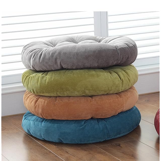 KFLUER 座布団 ざぶとん クッション 大きめ 55×55×10cm コーデュロイ生地 無地 フロアクッション 椅クッション おしゃれ 丸型 円型 シンプル かわいい ふわふわ 瞑想 民宿 座り心地いい (Color : ブルー)
