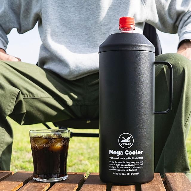 1.5L メガクーラー ペットボトルホルダー ペットボトルクーラー 10時間 保冷 大容量 真空断熱 ジャグ 電気代 節約 ステンレス 1500ml (ブラック)
