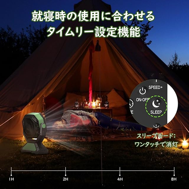 「静音性に優れたDCモーター採用」 ランニングコストを抑えられた省エネ性も高いDCモーターを採用し、送風パワー調節によっての作動音は最低わずが30dBで、最高でも38dBしかない優れた静音性を備えております。静かなオフィス環境に集中したいときや、テントに快適な睡眠を取りたいに作動音や表示ランプの明るさによる邪魔にならずに、涼しさを満喫していただけます。