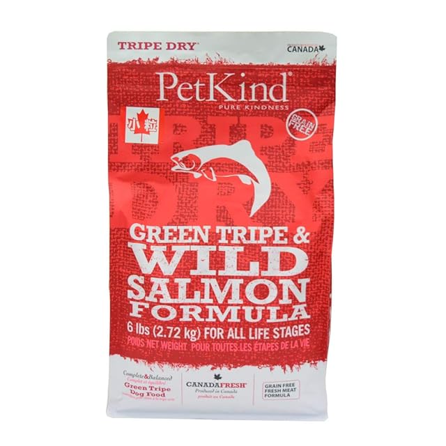 グリーンラムトライプを第一主原料に、新鮮なワイルドサーモンを贅沢に使用しました。 サーモンにはアスタキサンチン等が豊富に含まれます。魚好きな愛犬が飛んでくる美味しさです