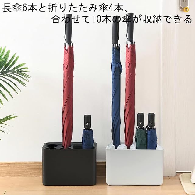 YMJOGGUE 傘立て 10本挿し アンブレラスタンド 傘入れ 傘収納 水受け皿着脱可能 コンパクト 玄関収納 屋内用 (ブラック)