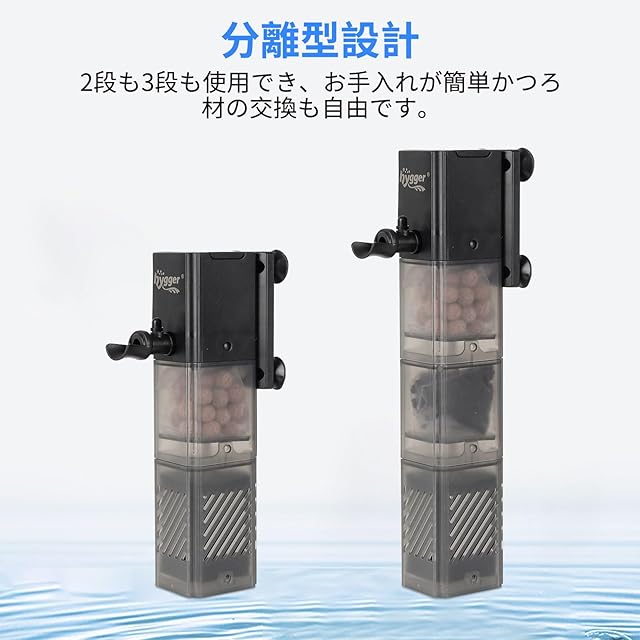【3タイプろ過】hyggerの水槽 フィルターは、スポンジ、活性炭、バイオボールの3層構造で、物理的、化学的、生物的なろ過を同時に実現します。不純物や臭いを効果的に除去するだけでなく、硝化菌を育成し、有害物質を分解します。これにより、水槽内の水質を最適化し、魚たちが健康で快適に生活できる環境を維持します。