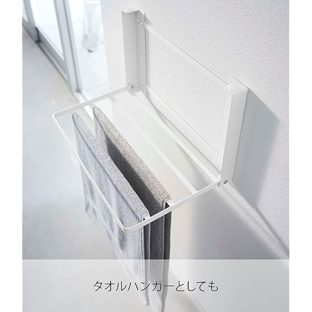 商品名:山崎実業(Yamazaki) 【 石こうボードピンセット・木ネジ 付属 】 石こうボード壁対応 折り畳み棚 ホワイト 使用時:約W41×D26×H25.5cm タワー tower 折りたたみラック 一時置きできる 壁面収納 8142