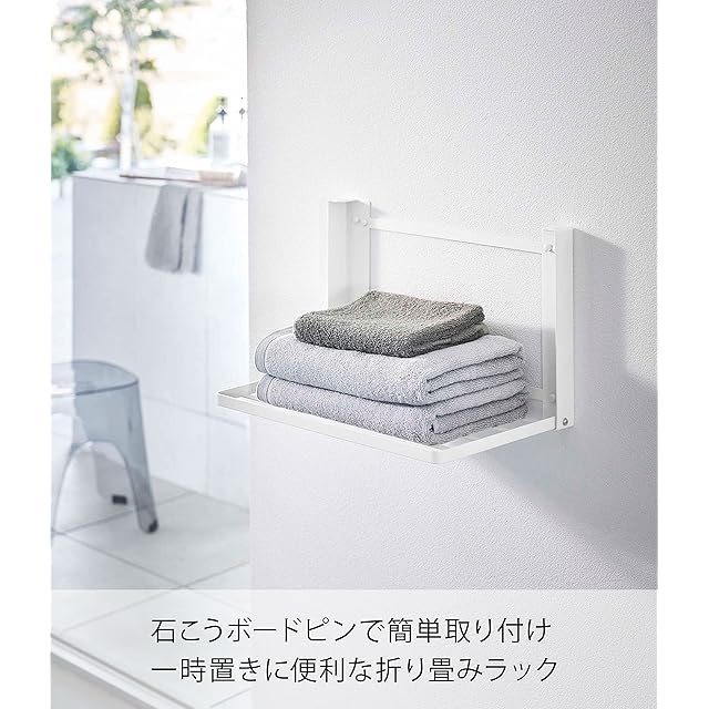 山崎実業(Yamazaki) 【 石こうボードピンセット・木ネジ 付属 】 石こうボード壁対応 折り畳み棚 ホワイト 使用時:約W41×D26×H25.5cm タワー tower 折りたたみラック 一時置きできる 壁面収納 8142
