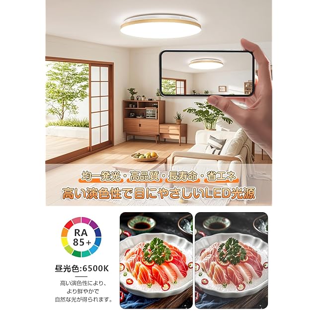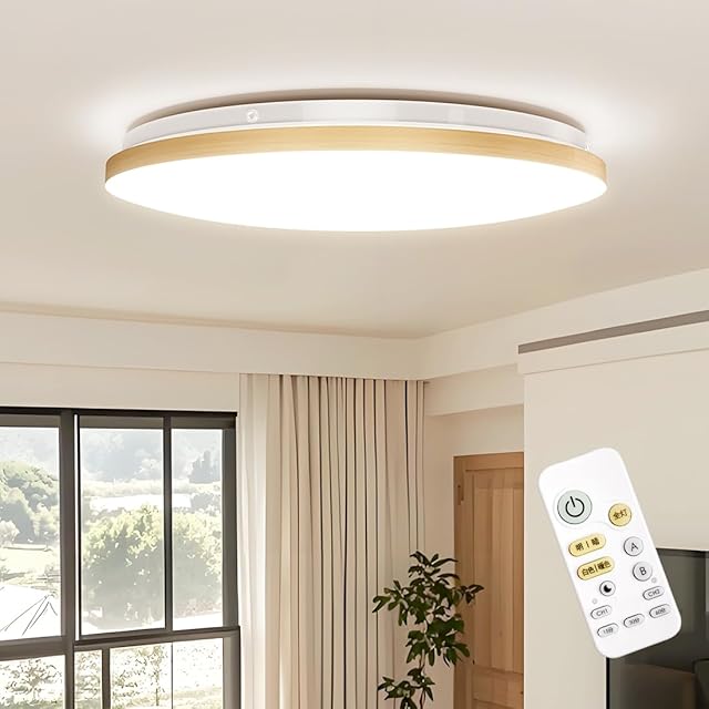 C-J-W LEDシーリングライト 6~8畳 木調目 リモコン付 無段階連続調光調色 昼光色 電球色 30W 3300LM 間接光常夜灯モード メモリ機能 15分/30分/60分スリープタイマー 天井照明器具 和室 和風 リビング 玄関 寝室 キッチン 日本語説明書 PSE認証済み 適格請求書の発行対象 ナチュラル