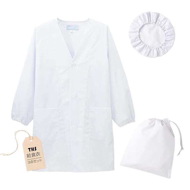 [ティーエッチエス] THS 給食着 給食エプロン 3点セット (給食帽子/給食袋) ノーアイロン シングル型 子供エプロン 小学生