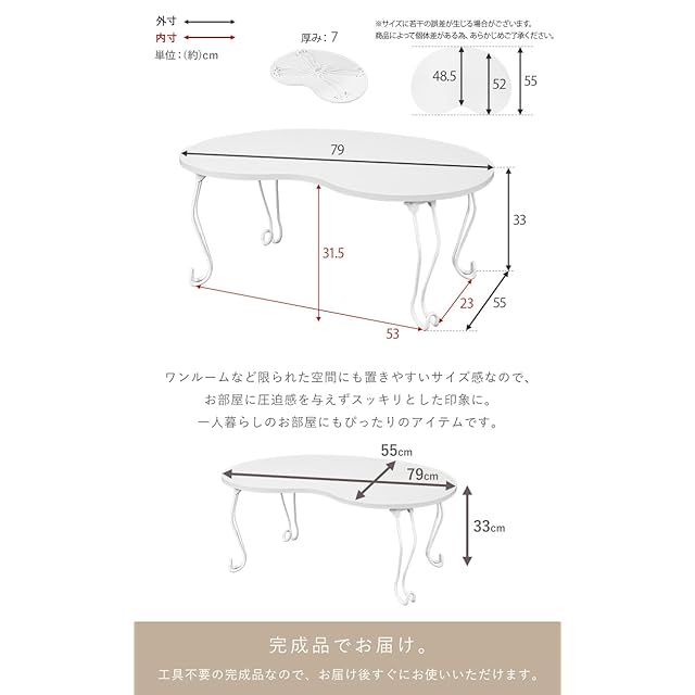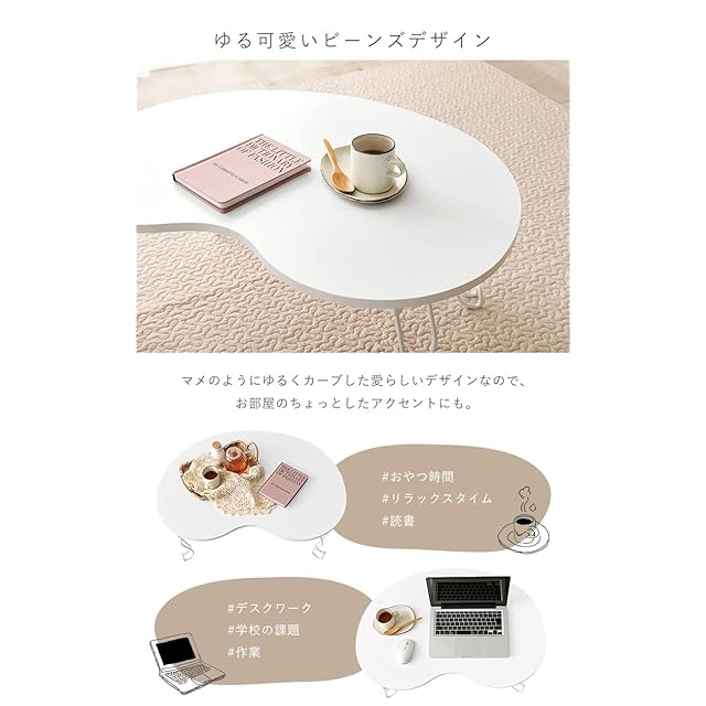 萩原(Hagihara) ローテーブル 折りたたみ ビーンズテーブル 韓国 インテリア 幅79 ホワイト 1台 MT-6639WH