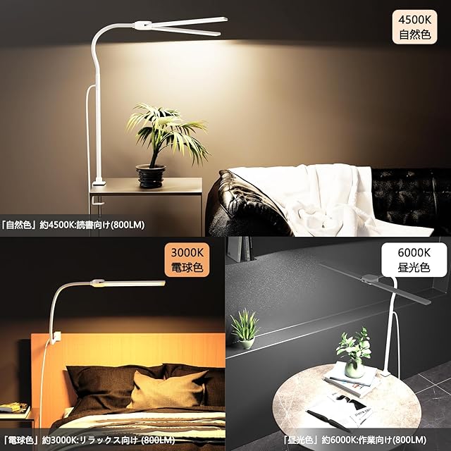 【便利なクランプ式デスクライト】所を取らないクランプ式のデスクライト、天板やテーブルに挟んで使えます。テーブルのスペースを大幅に節約できます(クランプの最大挟む厚さはcmまで)。