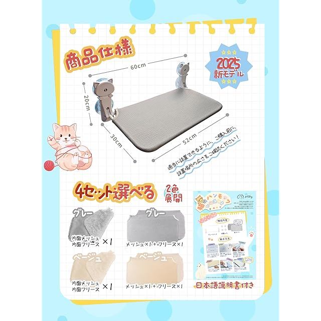 商品名:【2025年新モデル】petstay 猫ハンモック 強力な吸盤式 猫 窓用 ハンモック 猫窓ベッド 折畳み式 耐荷重約15kg 室内飼いの猫・大型猫・肥満気味の猫用 ウィンドウベッド ファスナー式 洗濯可能 手入れが簡単 取り付け簡単 工事不要 穴あけ・接着剤不要 オールシーズン対応 日光浴 ストレス解消 日本語説明書付き (グレー, 大(52×30cm・片面メッシュ片面フリース×1))