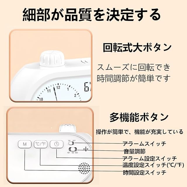 ✅【簡単操作】:設定したい時間を回転操作するだけでタイマーセット!直感的な使い方に加え、聞き取りやすいアラーム音で作業の終了を確実にお知らせし、スムーズなタイムマネジメントをサポートします。