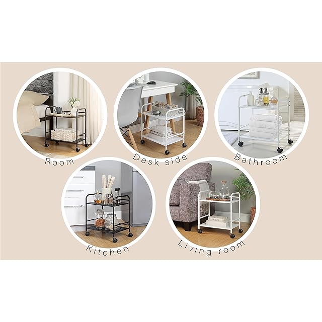 商品名:サニーポイント スチールラック 収納ワゴン デスク下収納 サイド収納 ストッパー付きキャスター キッチンラック (2段,白)