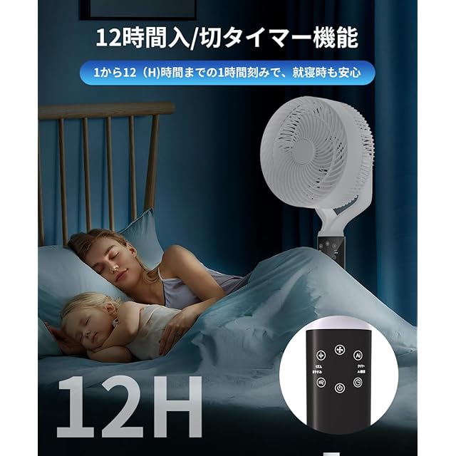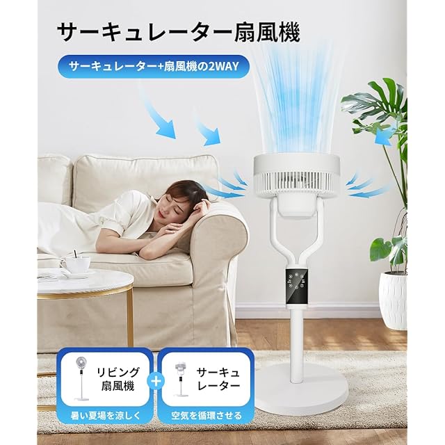 商品名:サーキュレーター 扇風機 【2025年新型&AIスマート風量調整】 DCモーター 静音 3D首振り 12時間入/切タイマー 風量9段階調節 パネル操作 リモコン付き 高さ調整可能 リビング パワフル送風 組み立て簡単 省エネ 空気循環