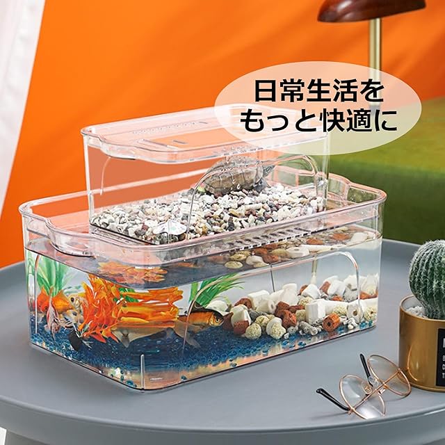 【商品内容】大容量水槽・金魚鉢 蓋つき 大:36×26.5×15.5(cm) 素材:PET