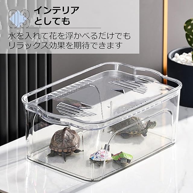 【蓋つきのプラスチック水槽】高強度PET素材を使用した大容量で蓋つきの水槽です。メダカや金魚、エビなど水生生物の観賞用にご使用ください。