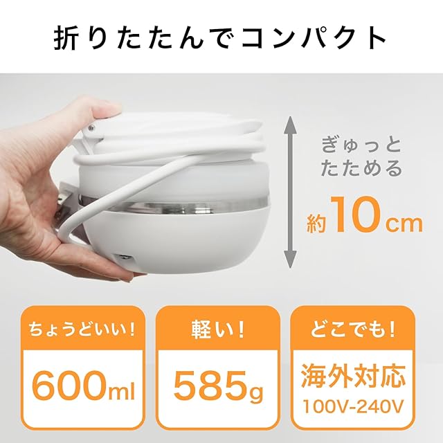 ドリテック(dretec) 電気ケトル 小型 折り畳みケトル 持ち運び トラベル キャンプ 容量600ml 国内・海外対応 アウトドア 折りたたみ 携帯 車中泊 PO-168WT