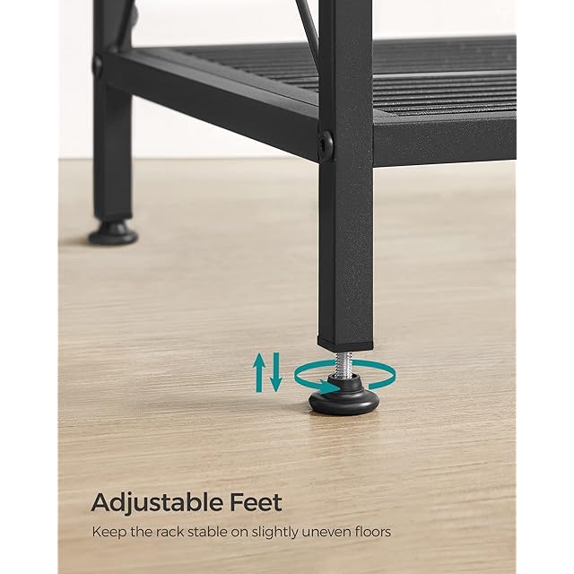 玄関、リビングルーム、キッチン、寝室の収納ソリューションをお探しですか? この5段収納ラックをチェックしてください! </br>この5段シェルフユニットの特徴: </br>- 頑丈な構造:強化Xバー付きの頑丈なスチールフレームが、アイテムを安定してしっかりと保持します。 </br>- 密なメッシュ:0.6インチの間隔で小さなアイテムを収納でき、アイテムを支える際の安定性が向上します。 </br>●足は調節可能:メタルラックを少し凹凸のある床でも安定させ、床を傷から守ります。 </br>【組み立て簡単】番号付きパーツと分かりやすい説明書付きなので、組み立てが簡単です。 </br></br>仕様: </br>- カラー:ブラック。 </br>- 材質:スチール </br>- 製品サイズ: 奥行12.6インチ x 幅23.6インチ x 高さ57インチ (32 x 60 x 57インチ)。 </br>- 製品重量:6.7kg </br>- 最大。 棚板1枚あたりの静止耐荷重:50kg </br></br>【パッケージ内容】 </br>- 5段収納ラック x 1。 </br>- 調節可能な足4本。 </br>- 転倒防止キット x 1。 </br>- アクセサリーバッグ x 1。 </br>- 説明書 x 1。 </br></br>SONGMICSの注意: </br>- 付属の転倒防止キットで製品を壁に固定してください。 </br>- メッシュシェルフの重量制限を超えないでください。 </br></br>