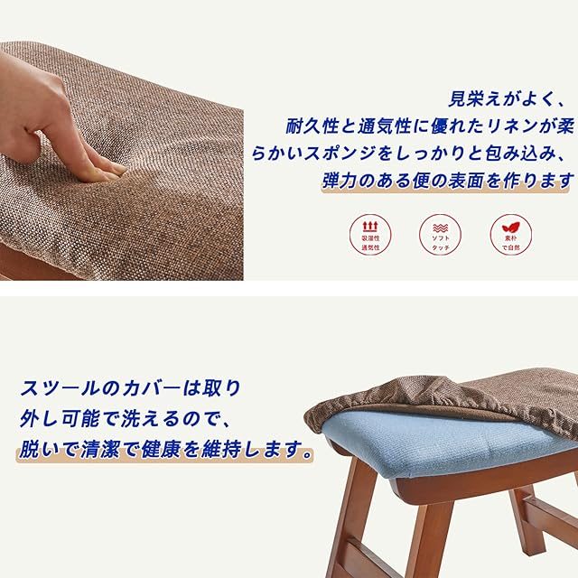 取り外し可能なカバー付き柔らかいスツール: 椅子木製の表面は、取り外し可能な肌に優しい布カバーを採用しているため、お手入れも簡単です。 フットスツールの座面には高密度・高反発のスポンジを使用しており、とても柔らかく長持ちします。 座っても足をリラックスさせても、とても快適です