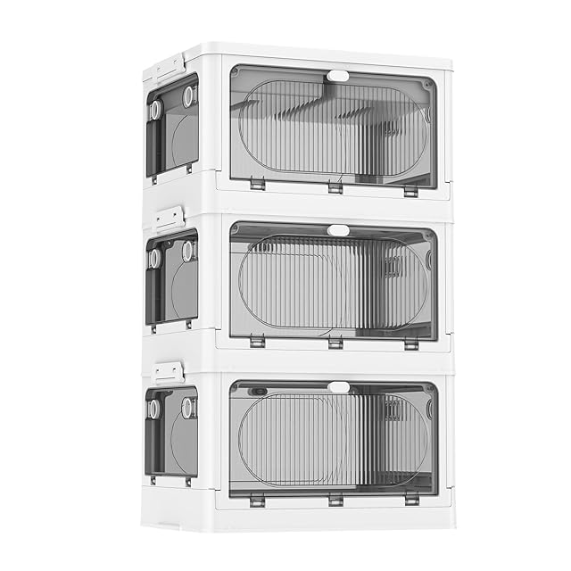 COOSOT 収納ボックス 折り畳み 蓋付き 小物 収納 コンテナ ボックス 折りたたみ キャスター付き 積み重ね 扉付き 5面開き 組立簡単 おしゃれ 多機能 省スペース 三個セット(Mサイズ:40*30*67cm)