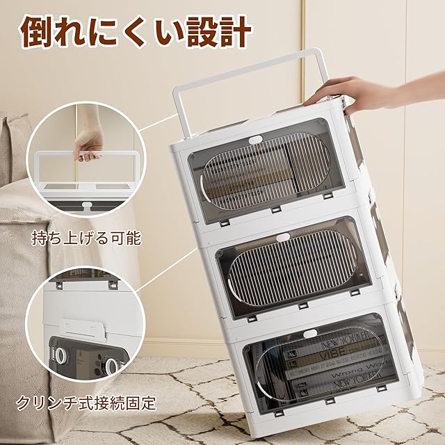商品名:COOSOT 収納ボックス 折り畳み 蓋付き 小物 収納 コンテナ ボックス 折りたたみ キャスター付き 積み重ね 扉付き 5面開き 組立簡単 おしゃれ 多機能 省スペース 三個セット(Mサイズ:40*30*67cm)
