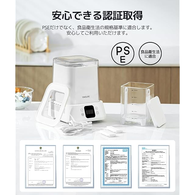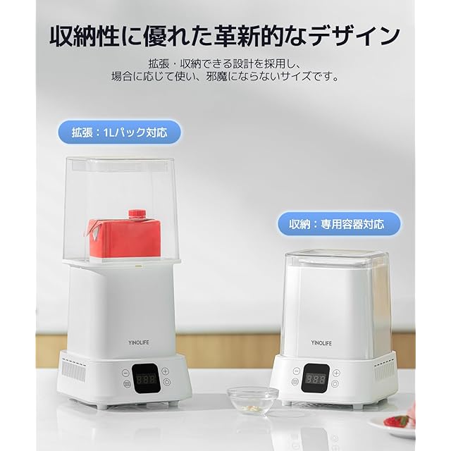 商品名:【6℃で自動冷蔵 過発酵防止】 YINOLIFE ヨーグルトメーカー SU-680 【2025年最新モデル】1台でマルチ機能 軽量コンパクト ガラス容器付き 牛乳パック対応 低温調理 25~80℃調節 1~99H調整 自動メニュー レシピ付き 初心者向け 甘酒メーカー 発酵器 発酵食 納豆 甘酒 塩麹 飲むヨーグルト カスピ海ヨーグルト