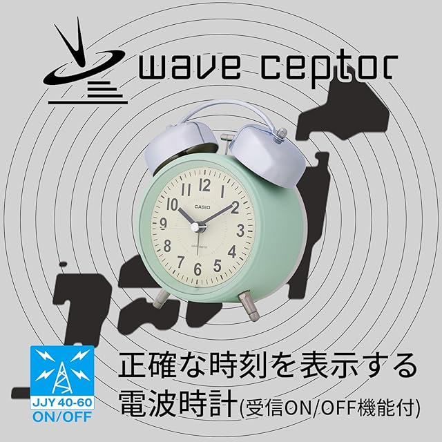 CASIO(カシオ) 目覚まし時計 電波時計 グリーン アナログ ベル ツインベル スヌーズ ライト TQ-720J-3JF
