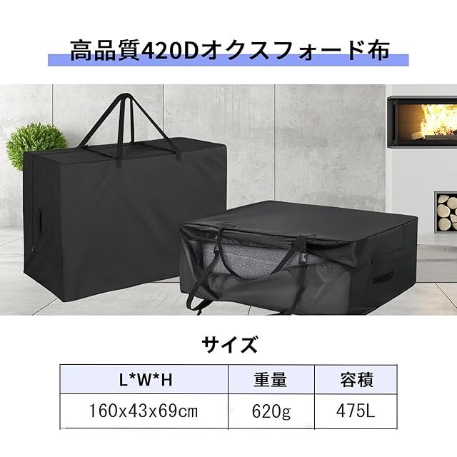 商品名:Fenghome マットレス収納袋 特大 475L ふとん収納袋 大容量 420Dオクスフォード布製 頑丈でしっかりトートバッグ 大型 布団収納袋 厚手 通気性よい 敷布団 収納 ぬいぐるみ 収納 衣類収納 ボストンバッグ 防水性・防塵性 収納袋付き 手持ち付き ベルト付き 持ち運びに便利