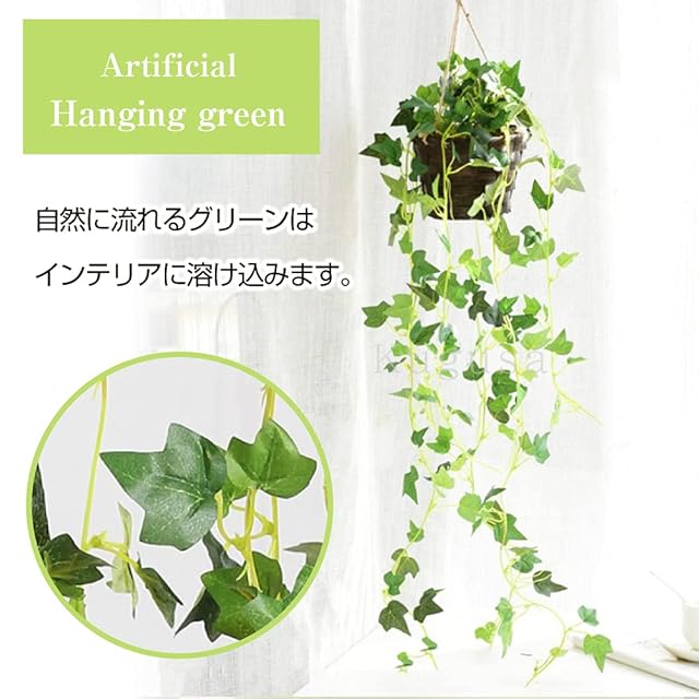 【インテリアの一部として】ハンギンググリーンの人工観葉植物です。リビングや寝室、玄関などに飾っていただければ、一気に空間が明るくなります。インテリアの一部としてお使いただけます。<br> 【癒しの空間】本物の植物では苦手な場所でも、枯れる心配がないので、玄関や洗面所、トイレなどの明るさが足りない、湿気が多い場所でも気にせず飾れます。お部屋にグリーンがあると、安らぎや癒し効果でストレス軽減にも繋がります。<br> 【お手入れ不要】水やりお手入れが不要なのも嬉しいところ。もちろん、土を使わないので虫の心配もしなくて済みます。軽量で衛生的です。外出が多い方でもお世話の心配をせず、いつでも綺麗なままを楽しめます。<br> 【店舗の装飾にも】オフィス、カフェやバーなどの店舗の内装、モデルルーム、ホテル、百貨店などの装飾にも重宝します。鉢はバスケットでナチュラルな雰囲気を醸し出します。様々な場所でご利用いただけます。<br> 【飾り方は色々】一つ一つが大変軽量なので、吊るす場所の重量を気にせず飾れます。また、お手入れが必要ないので、なかなか普段手の届かない場所にまで飾れます。<br>