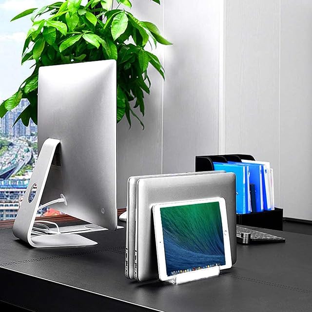【4スロット付き縦型スタンド 】 この新型スタンドは、2台のノートパソコンを同時に収納可能で、スマートフォンやタブレットをサイドスロットに置いて映画鑑賞や作業ができます。一段と向上した製品体験を実現します。